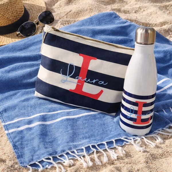 🏖️ Pack playa personalizado con nombre – Neceser, botella y toalla pareo